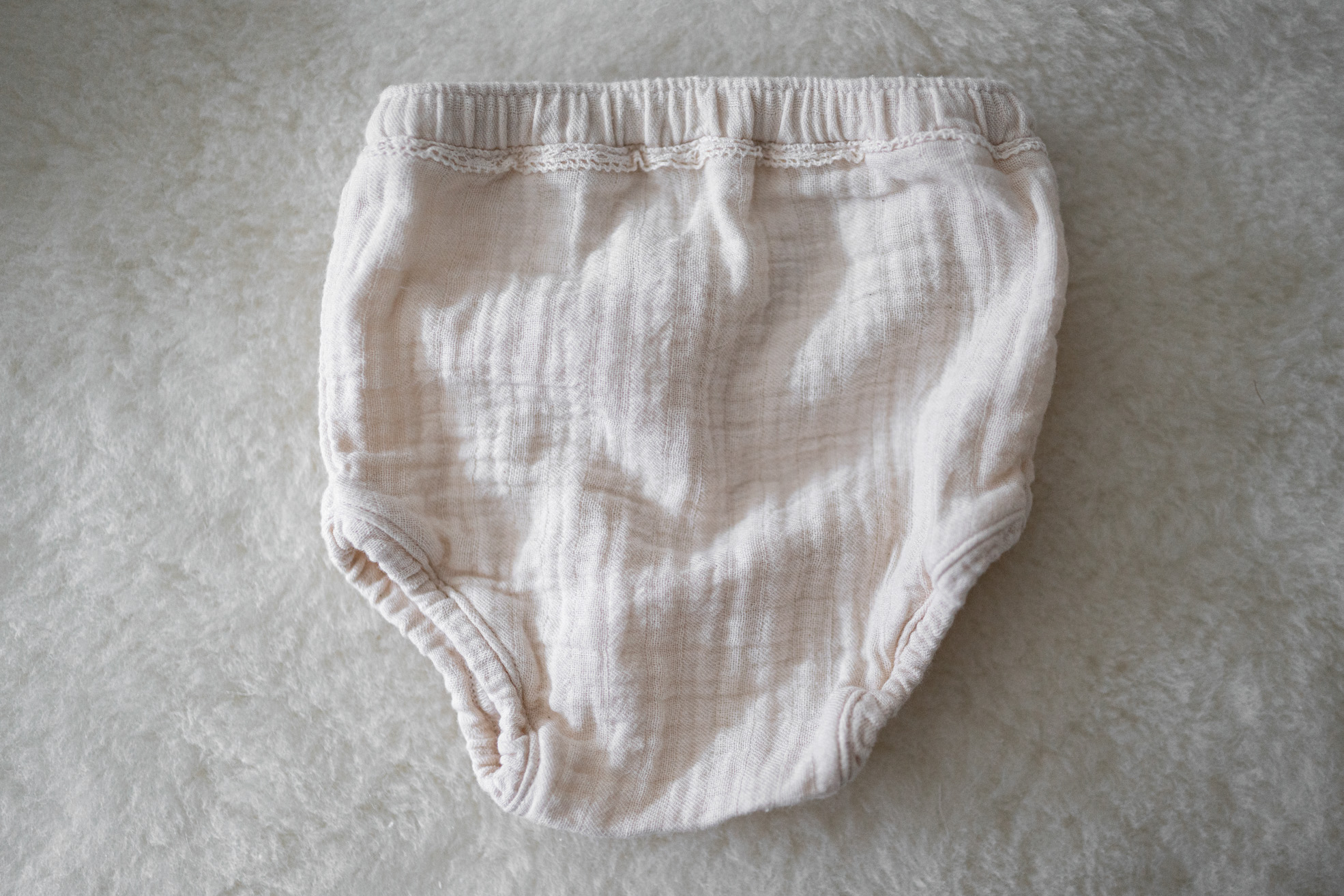 Bloomer cream ~ Katoenen bloomer van luchtige mousseline stof. Met een lief kant randje.
